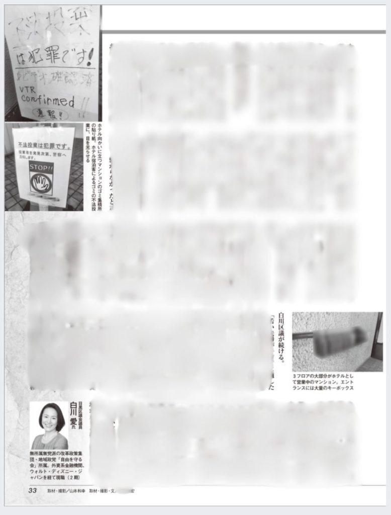 これらのメディア取材に私が協力したこともあり、同様の事例で不安を抱えている住民からの相談が私のところにも数多く寄せられました。反響の大きさに驚くと共に、これまでは誰に相談して良いのかわからなかった。実際にトラブルが起きてからじゃないと警察も区役所も対応してくれない。という声も多くあり、我慢していた区民の方が多いにも関わらず行政の対応が後手に回ってしまっていることを痛感し、規制緩和で民泊と旅館・ホテルの境目が曖昧になり過ぎてしまっている事も自治体への不満にもつながっているのではないかとも感じました。