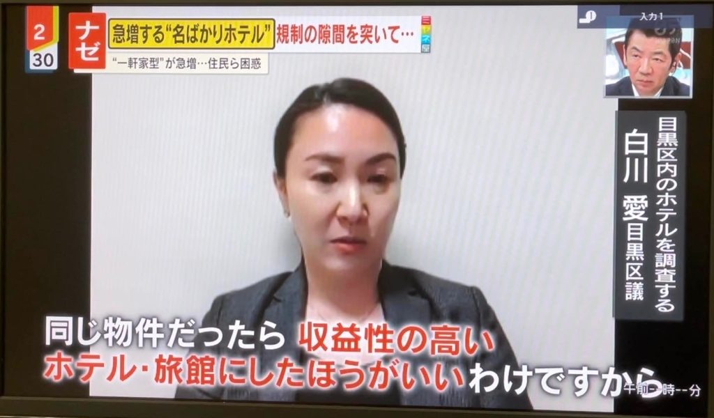 2月27日には、読売テレビのお昼の情報番組『情報ライブ ミヤネ屋』でも、目黒区で一軒家型ホテルが増加している背景や、なぜ閑静な住宅街目黒区で宿泊施設トラブルが起きているのか、名ばかりホテルの現状を近隣の方への取材や事業者への取材内容などもまとめた内容が放映されました。
